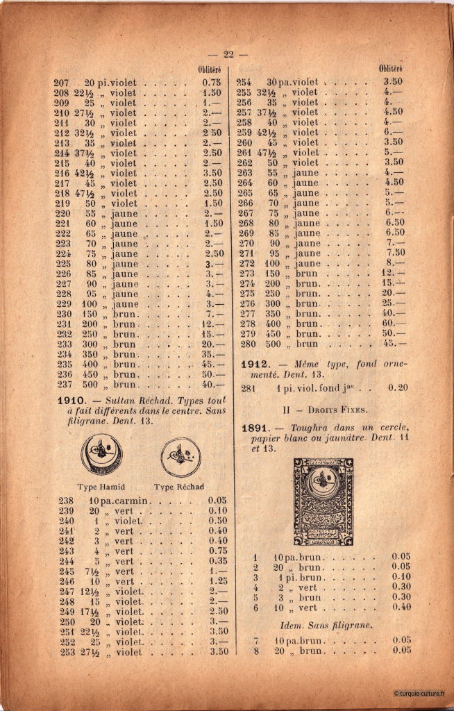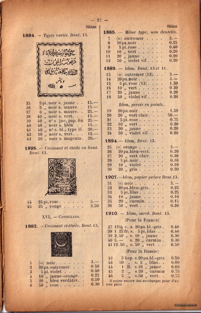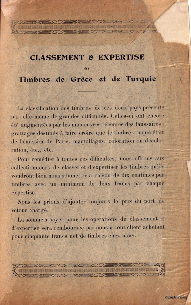 Un des premiers catalogues sur la philatélie turque, publié à Paris en 1912.