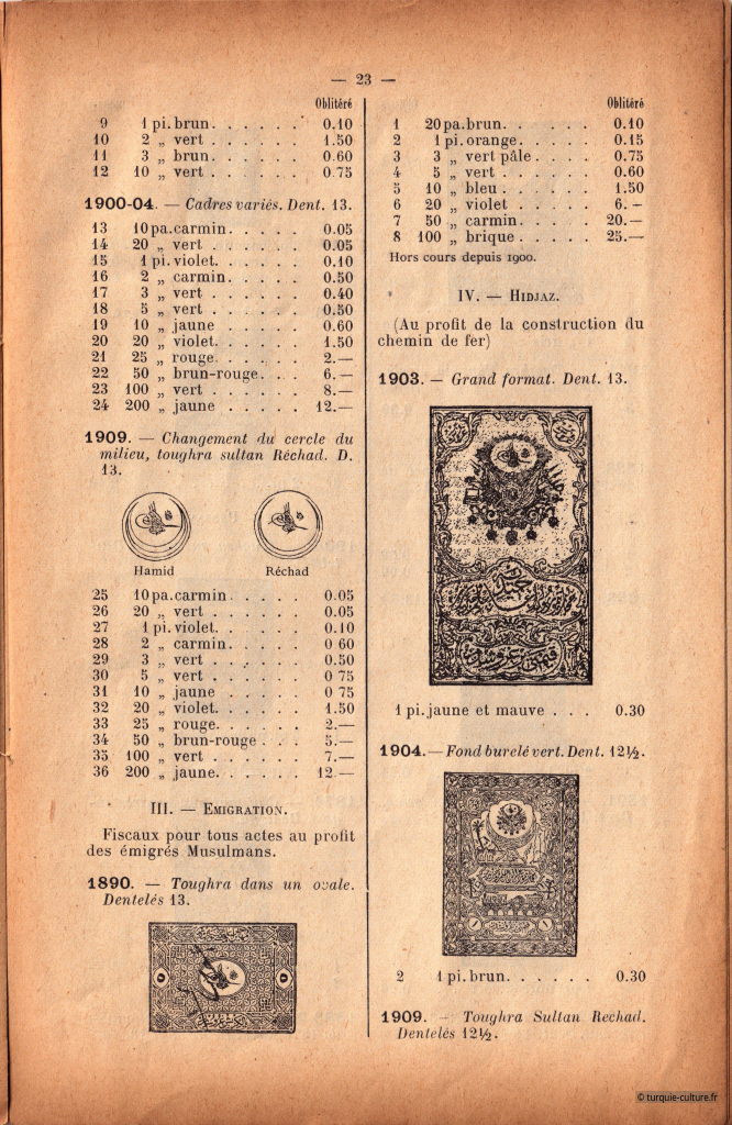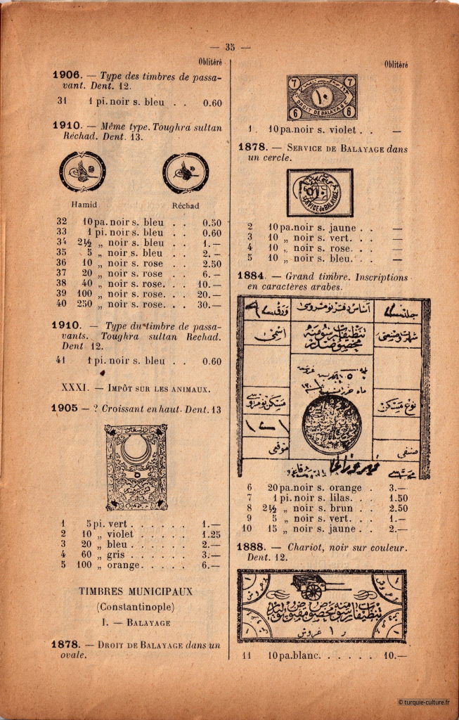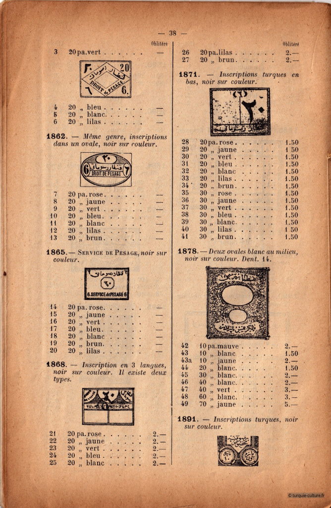 Nous reproduisons les 18 premières pages ci-dessous. Pour voir les timbres, on peut consulter cette page : https://turquie-culture.fr/pages/arts/arts-graphiques/timbres-ottomans-avant-1914.html