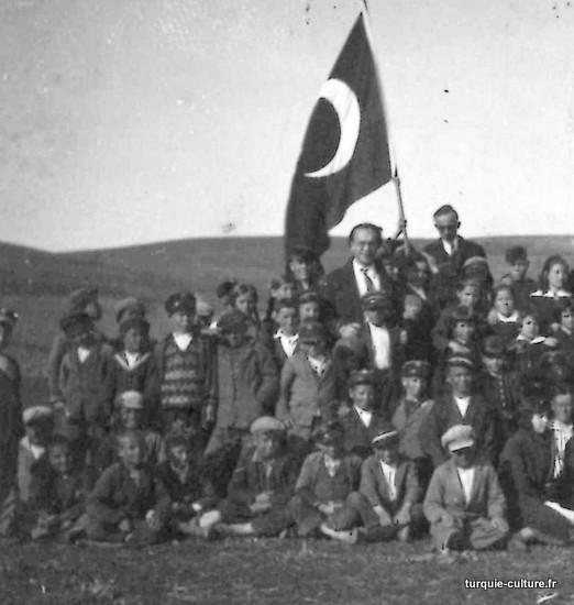 Ci-dessous : photographie d'une classe le jour de la fête, le 23 avril 1932