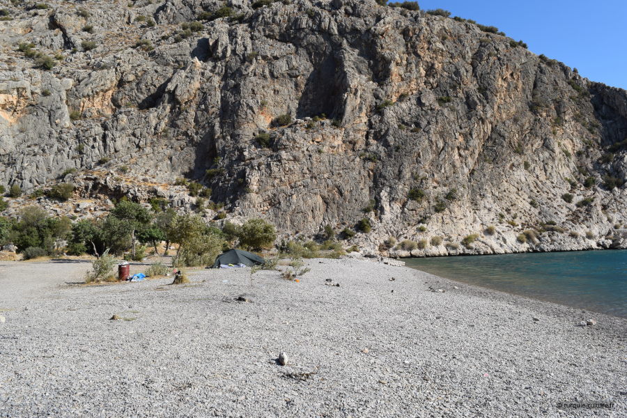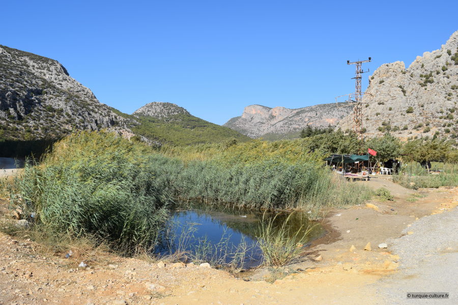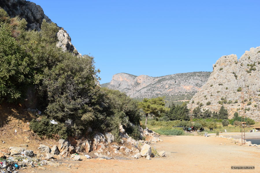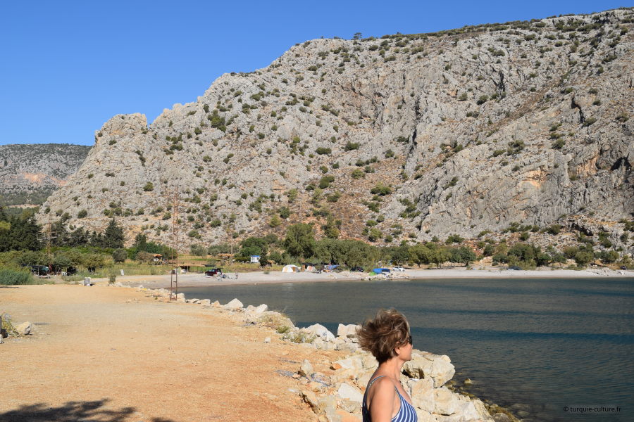 La baie est accessible depuis une petite route très peu fréquentée à partir de la route Antalya-Mersin. Aucun aménagement n'est prévu, à part un petit café n'est prévu pour accueillir des visiteurs. Ce qui n'empêche pas certains d'y pratiquer, en été, le camping sauvage avec tous les conséquences que l'on imagine...