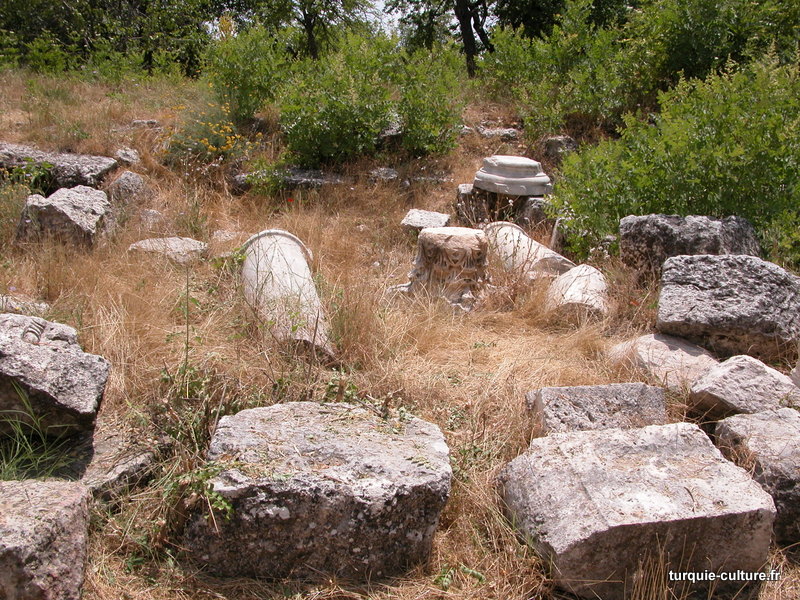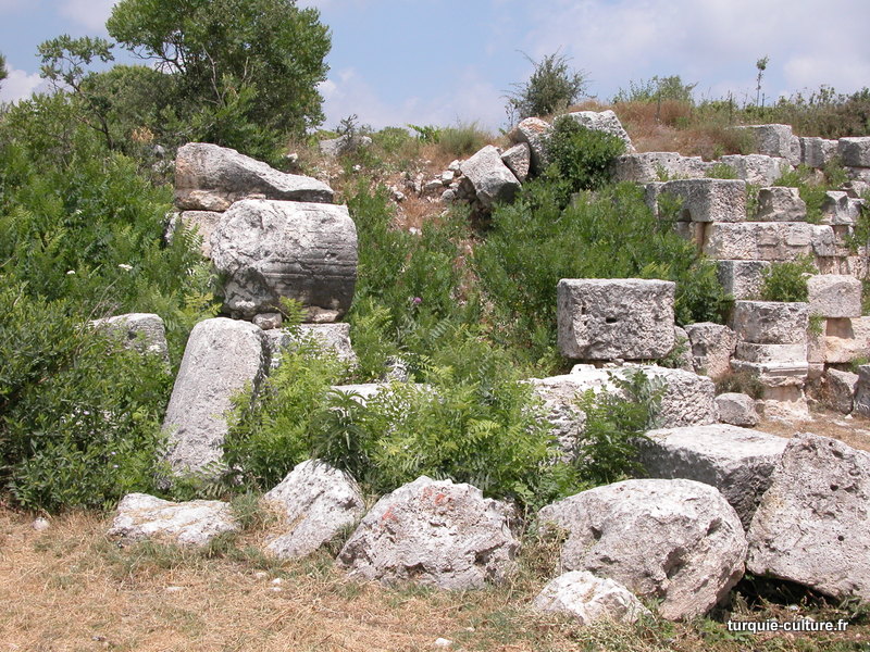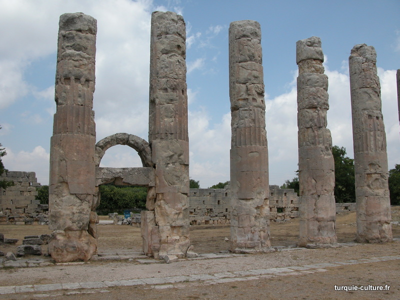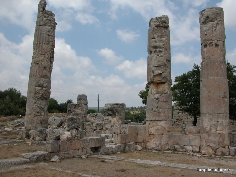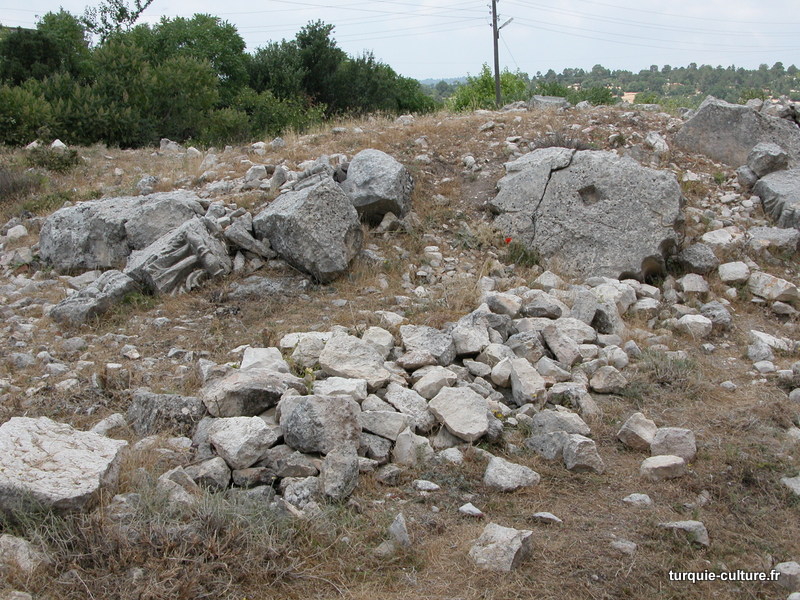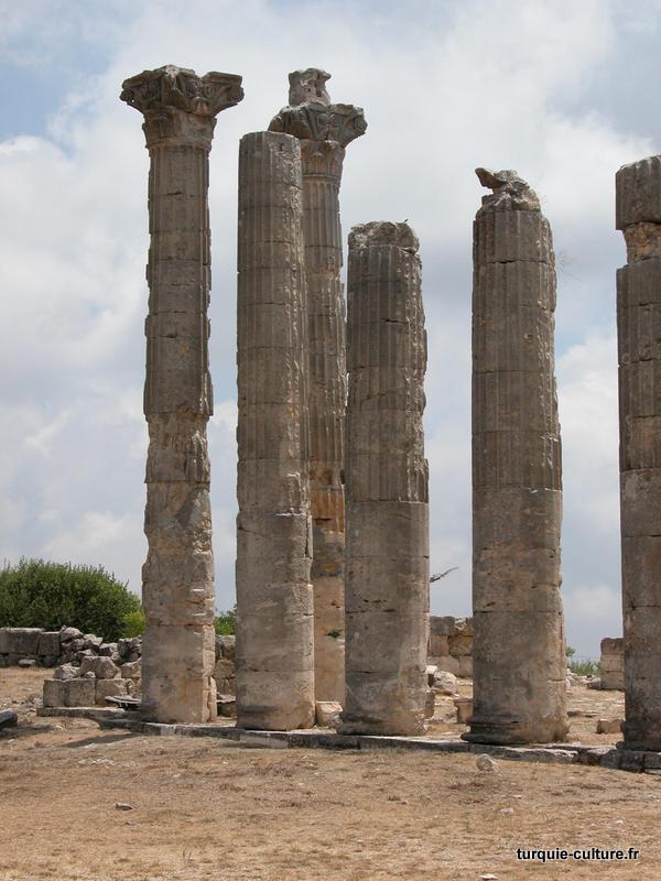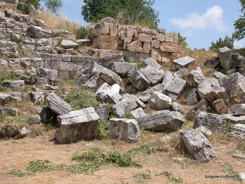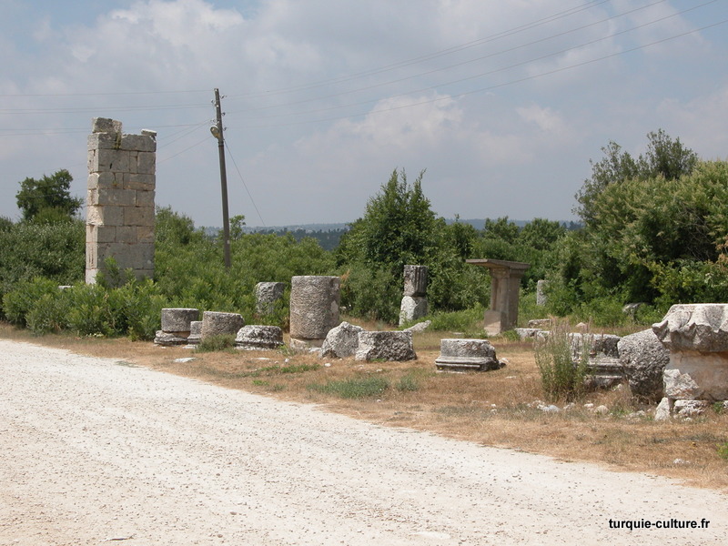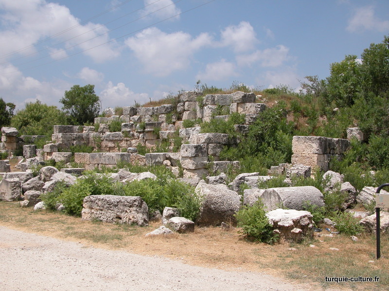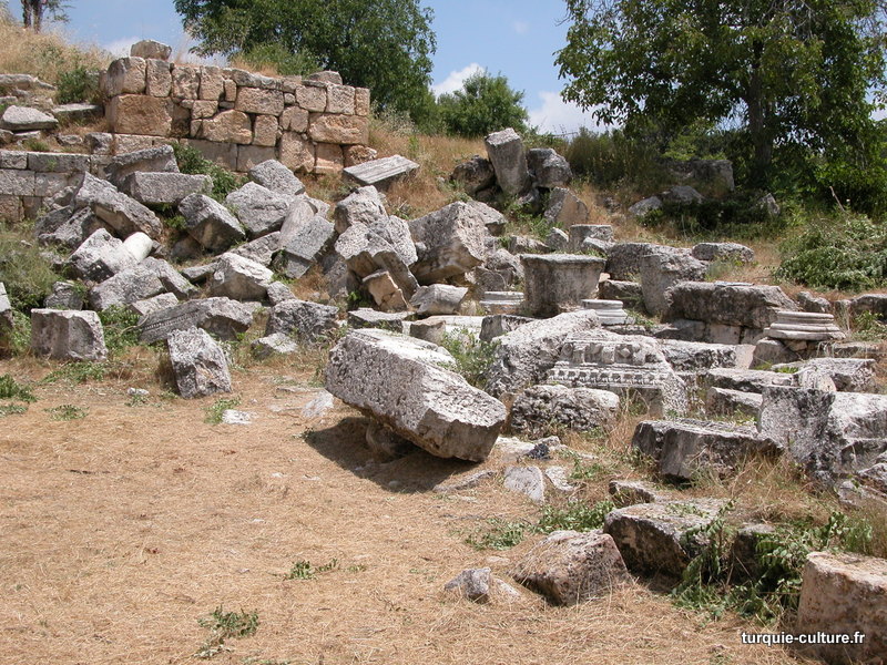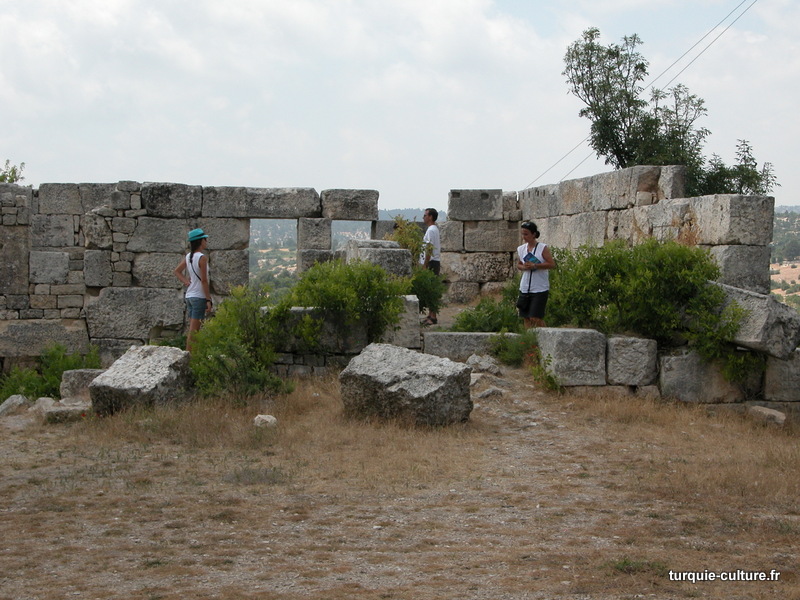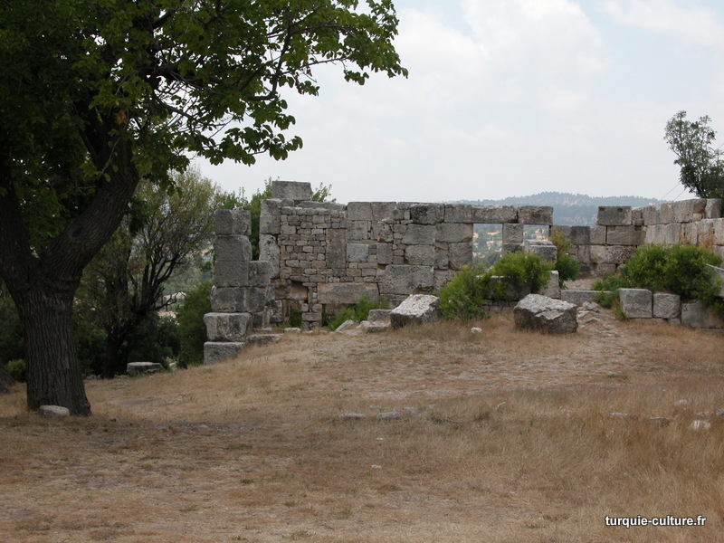 A 1200 mètres d'altitude, subsistent le théâtre, le beau portique, le temple de Tychè (la Fortune), la porte nord de la ville, les colonnes du temple de Zeus (IIIe siècle av. J.-C) qui était très renommé dans l'Antiquité et qui est assez bien conservé.