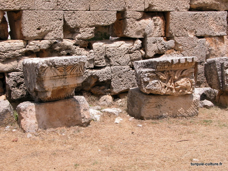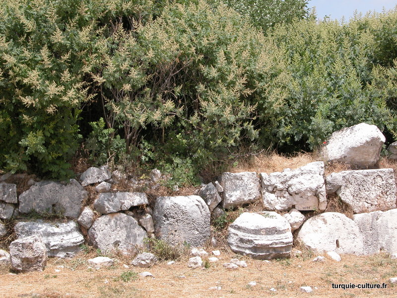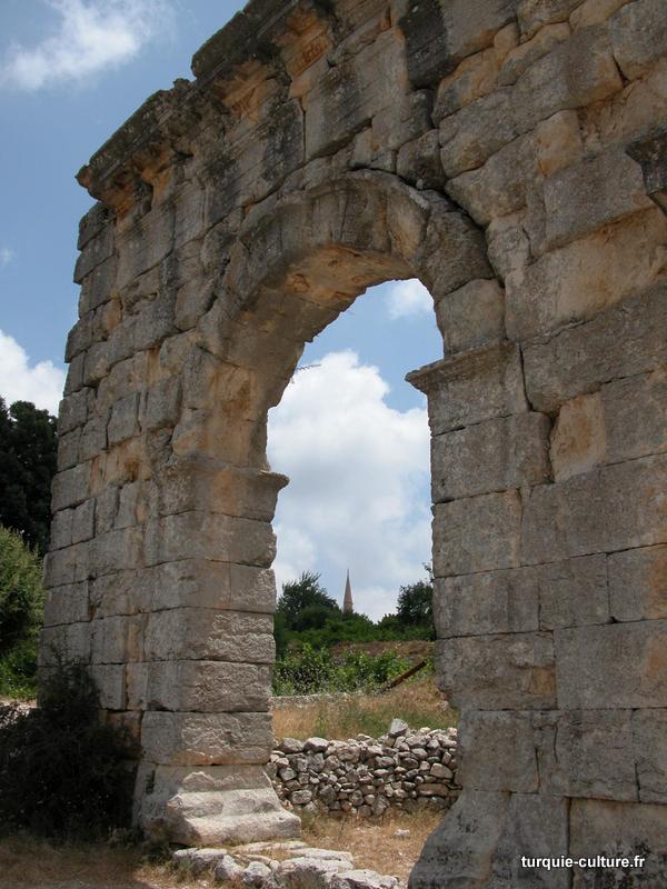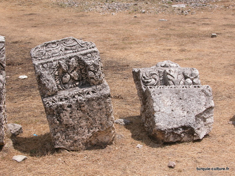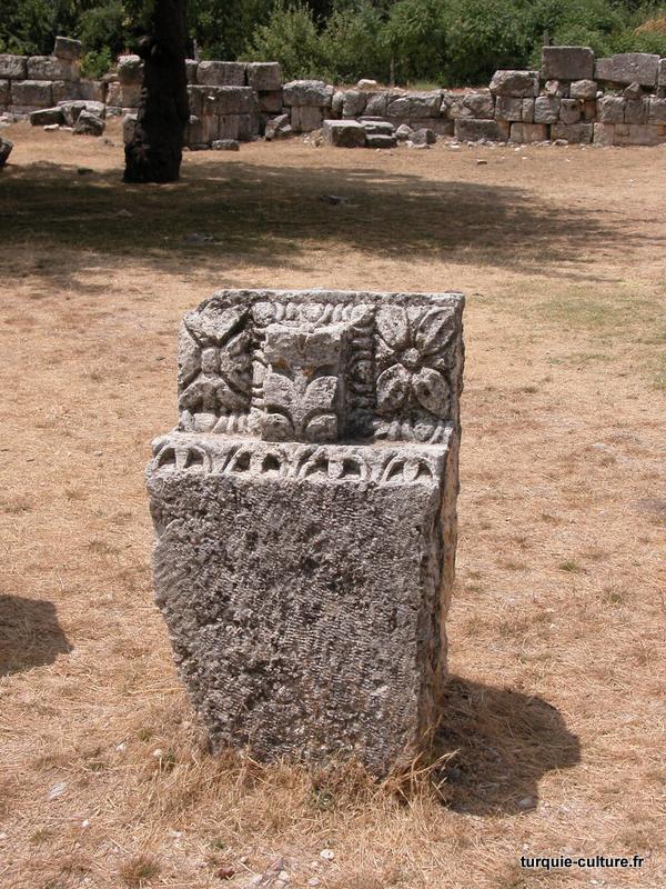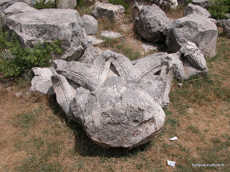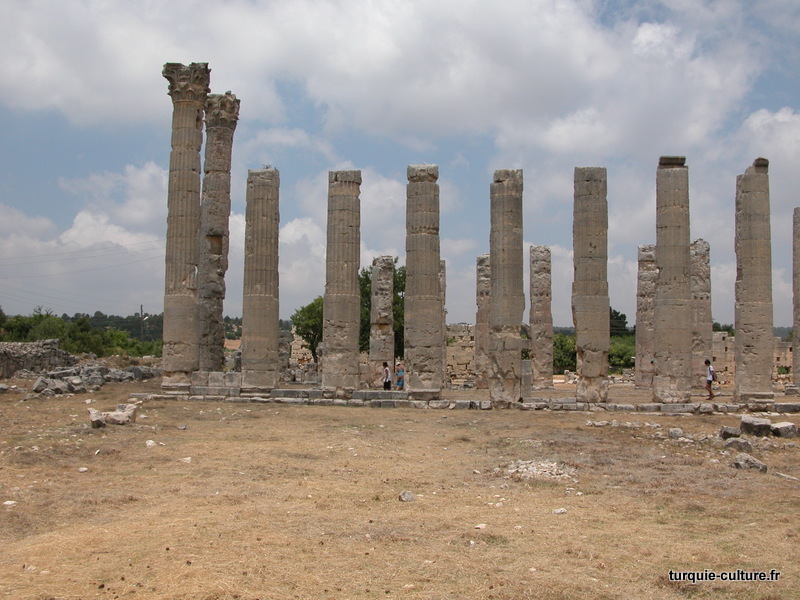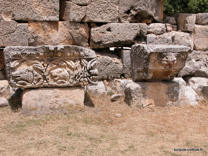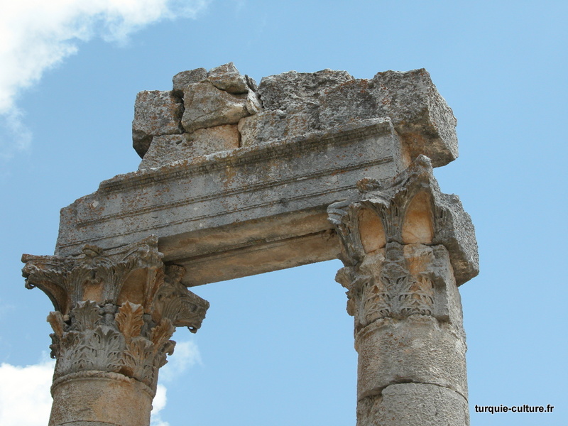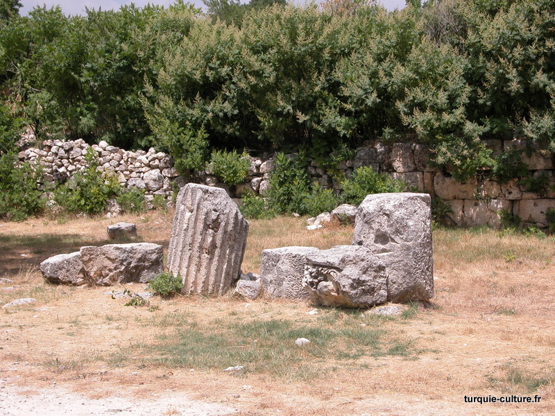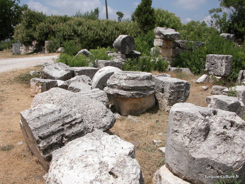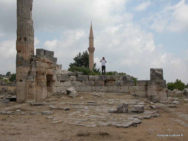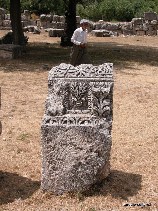 A 1200 mètres d'altitude, subsistent le théâtre, le beau portique, le temple de Tychè (la Fortune), la porte nord de la ville, les colonnes du temple de Zeus (IIIe siècle av. J.-C) qui était très renommé dans l'Antiquité et qui est assez bien conservé.