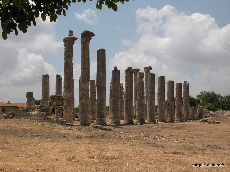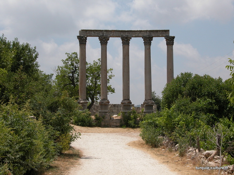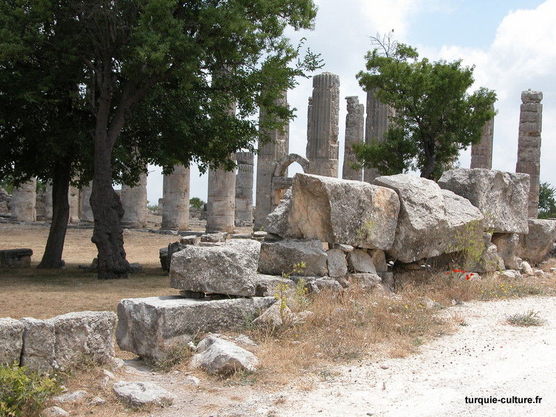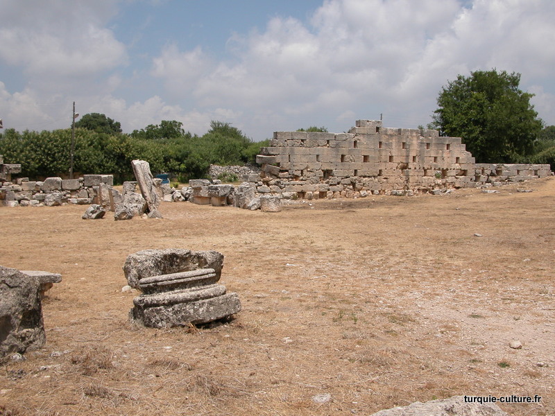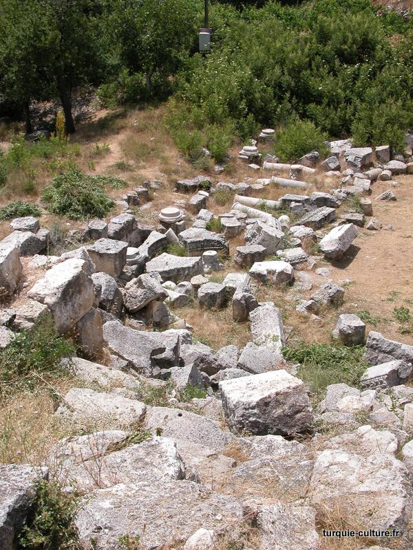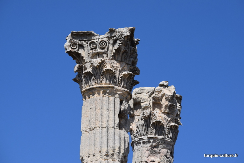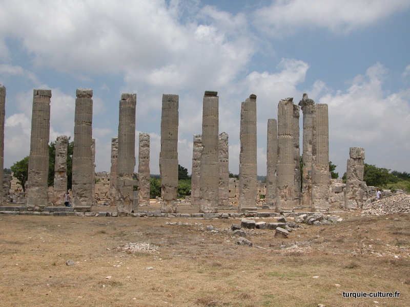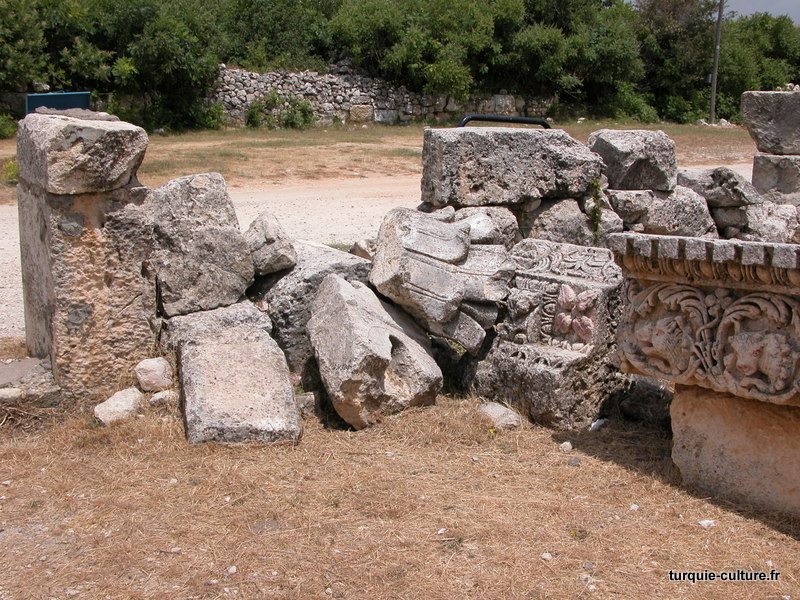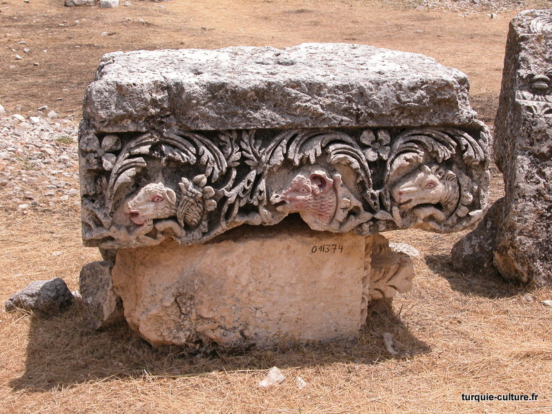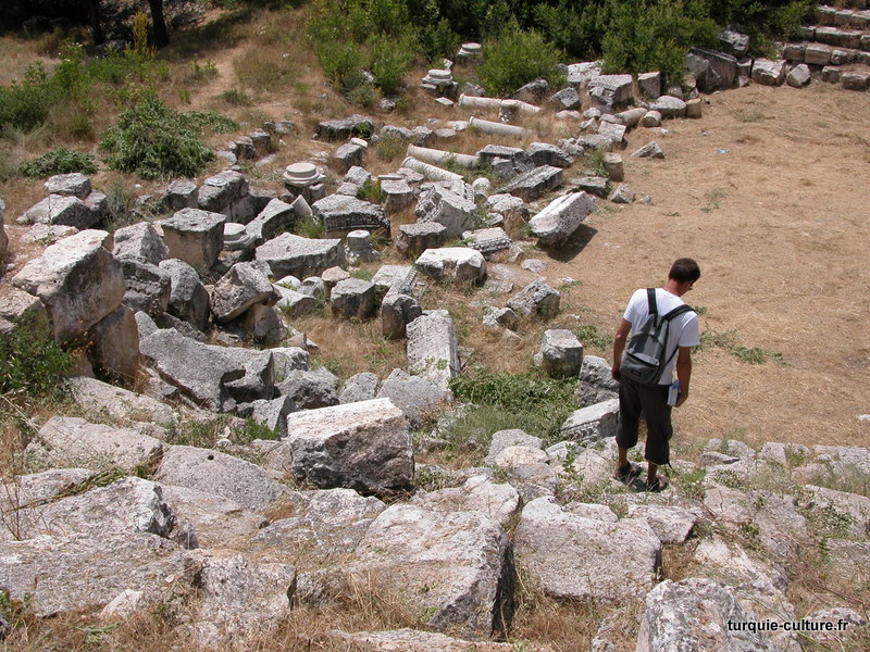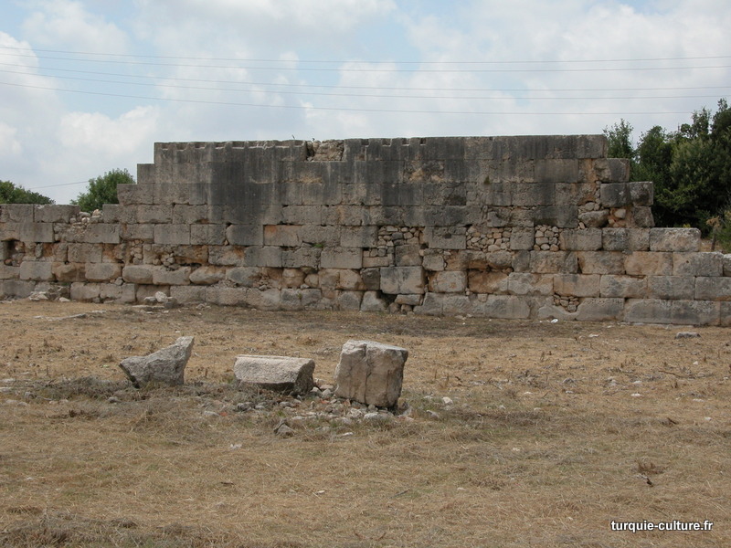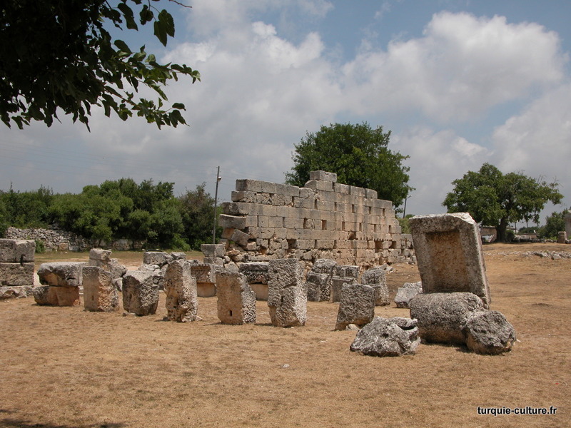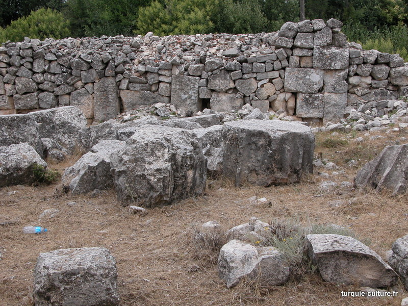 A 1200 mètres d'altitude, subsistent le théâtre, le beau portique, le temple de Tychè (la Fortune), la porte nord de la ville, les colonnes du temple de Zeus (IIIe siècle av. J.-C) qui était très renommé dans l'Antiquité et qui est assez bien conservé.
