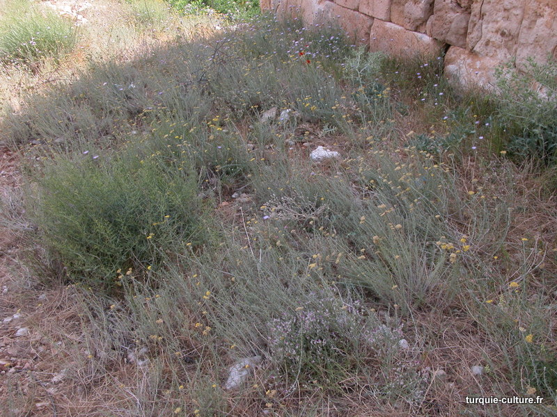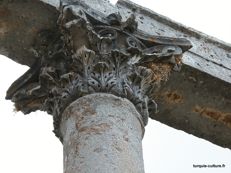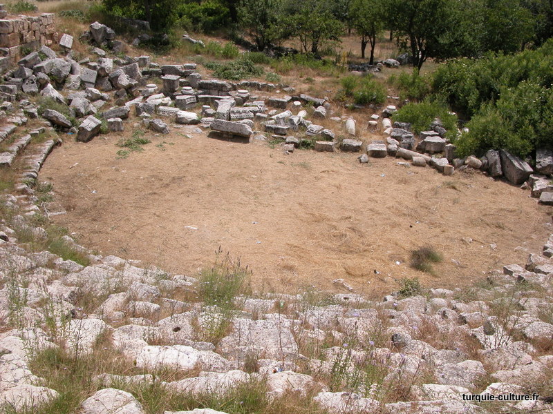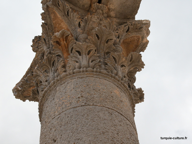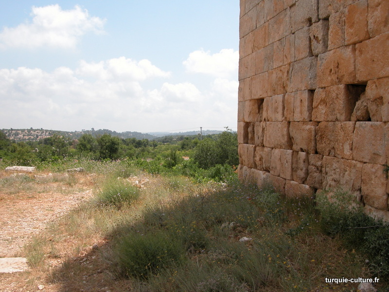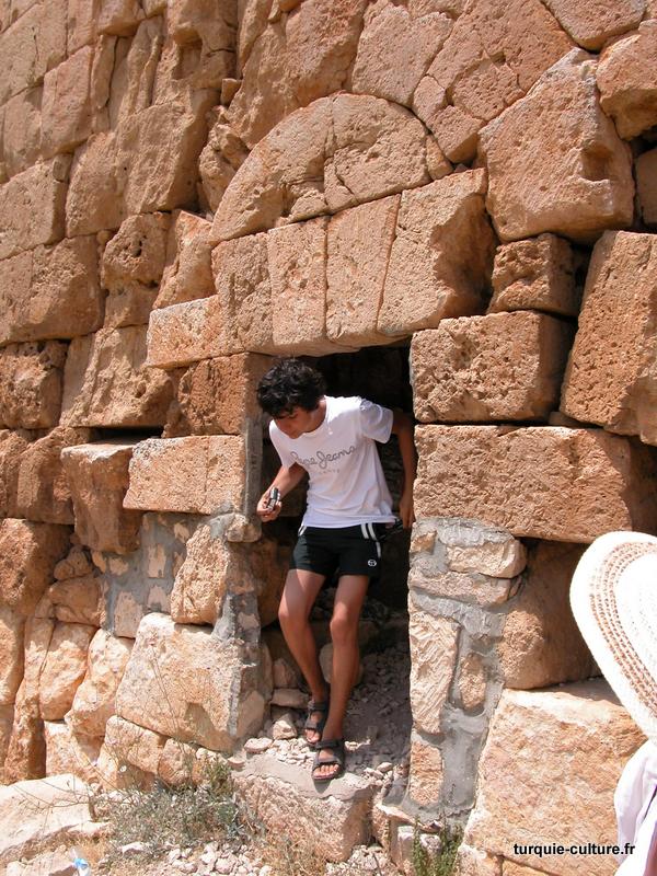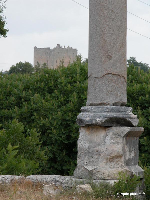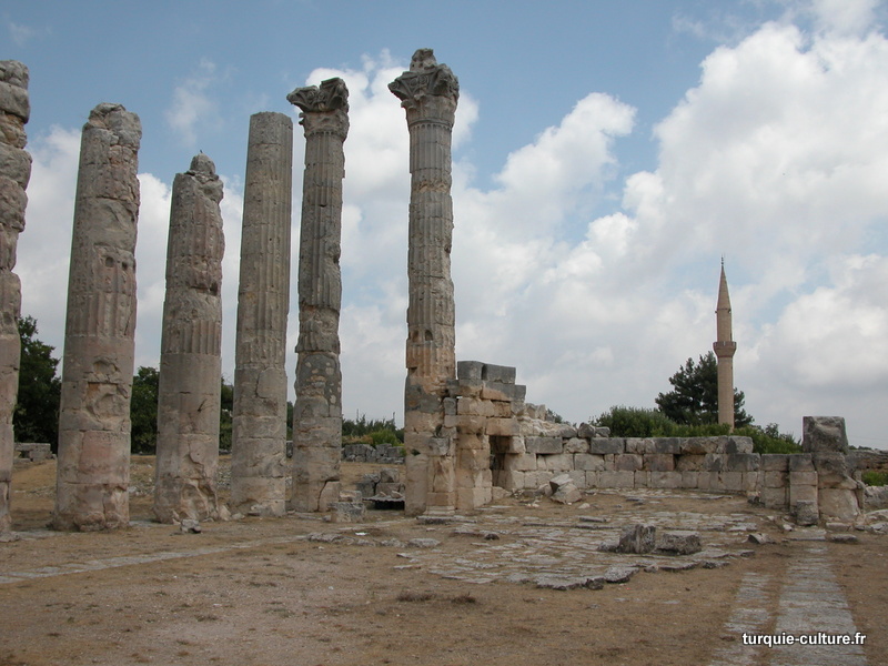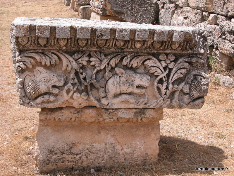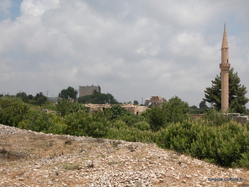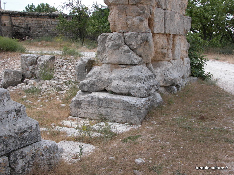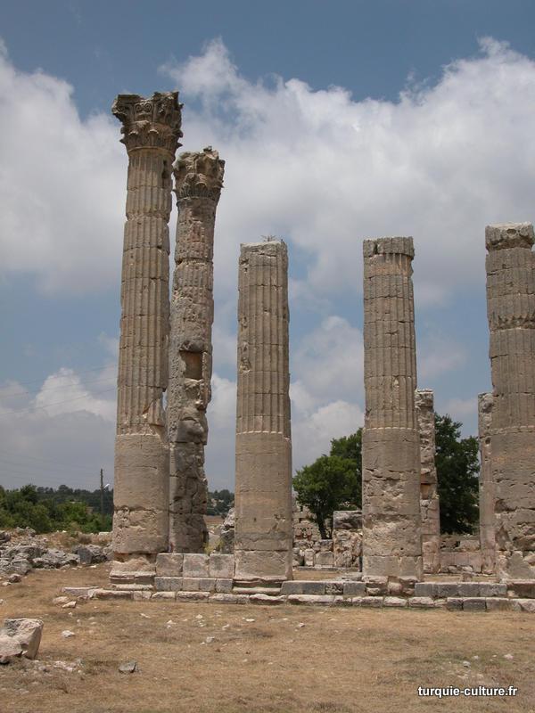 A 1200 mètres d'altitude, subsistent le théâtre, le beau portique, le temple de Tychè (la Fortune), la porte nord de la ville, les colonnes du temple de Zeus (IIIe siècle av. J.-C) qui était très renommé dans l'Antiquité et qui est assez bien conservé.