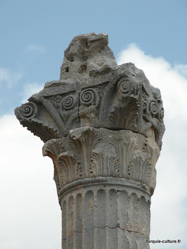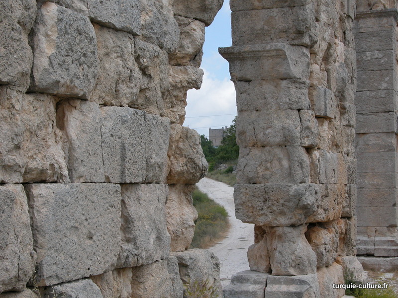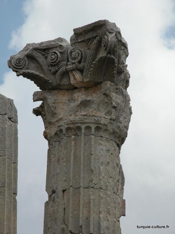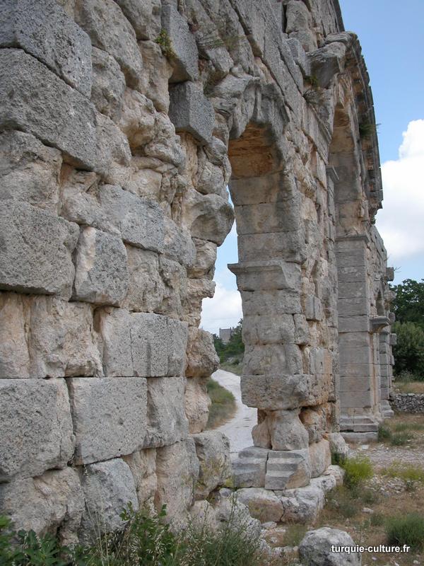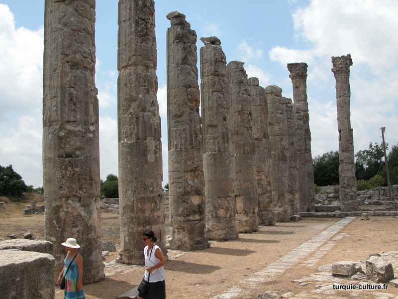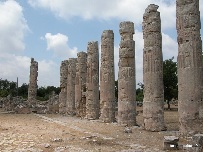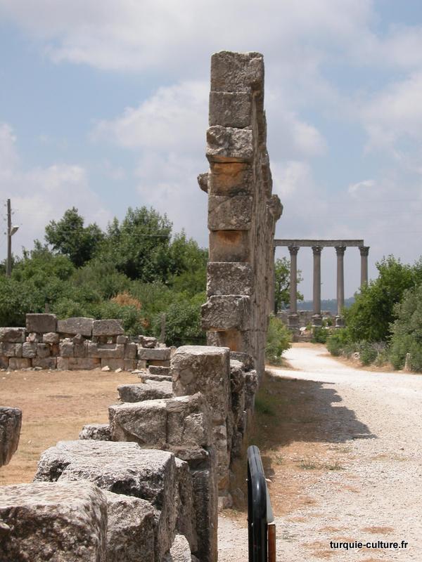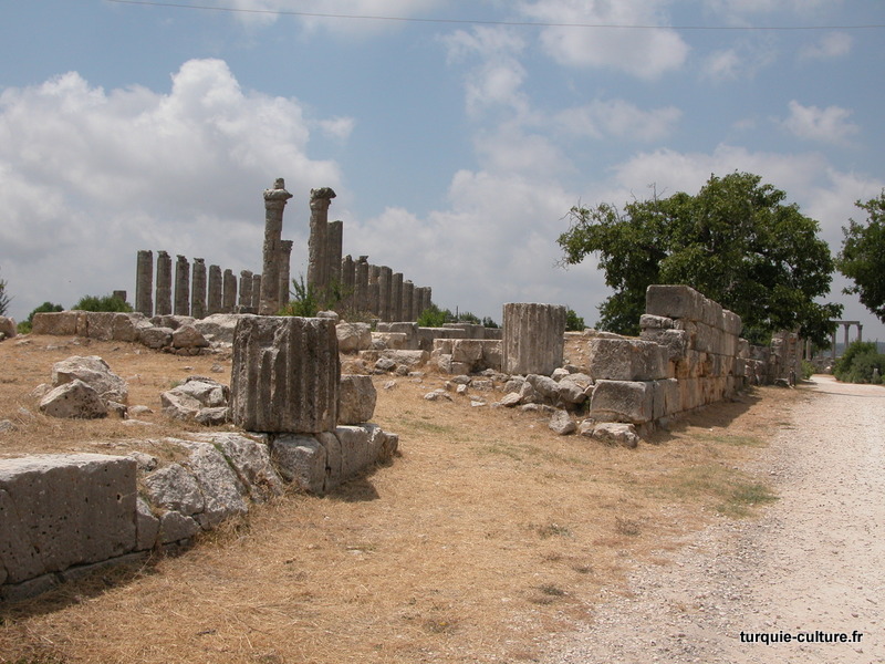 Il y a deux rues perpendiculaires à colonnades qui, selon un plan défini, relient d'importants bâtiments publics. La rue principale, orientée est-ouest, relie le Nymphaion et les Propylées au temple de Tyché, situé à l'ouest. Toutes les colonnes de cette rue datant du Ier siècle apr. J.-C. sont en ruine.