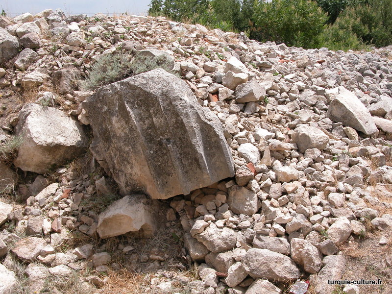 Le temple de Tyché, situé au bout de la rue à colonnades, date de la seconde moitié du Ier siècle après J.-C. Le temple a été construit sur un stylobate mesurant 47 x 12 m. À l'ouest, il y a un naos de 10 m de large et 10 m de long. Le niveau du stylobate à l'est est accessible par un escalier. Les blocs d'architrave sont soutenus par des colonnes monolithiques de 6 m de haut. Aujourd'hui, cinq de ces colonnes ont survécu. On l'appelle pro-stylos uniquement parce qu'il y a 6 colonnes dans la direction de l'entrée. Une inscription situé sur un bloc d'architrave indique que le bâtiment a été construit comme un don à la ville par Oppius et sa femme Kyria :
