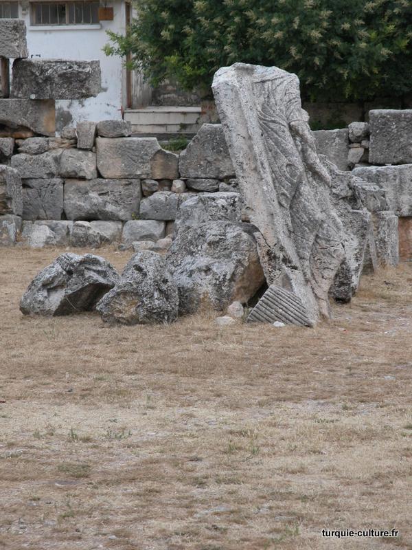 Fragments sculptés près du temple