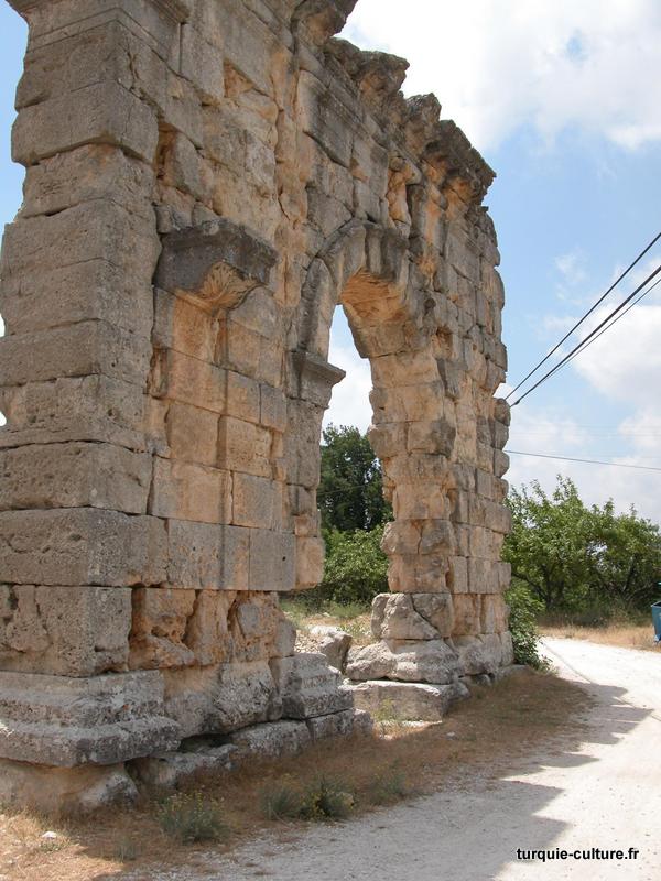 Il se compose de galeries creusées dans la roche, de canaux ouverts construits en maçonnerie et de tunnels souterrains (specus) s'étendant sur 32 km d'Aksıfat jusqu'à Diocésarée. Il se termine par le bâtiment du Nymphée, une fontaine publique, situé au centre-ville, qui est l'un des bâtiments monumentaux les plus importants de la ville. Il s'agit d'un bâtiment de deux étages avec un bassin semi-circulaire à l'avant et qui reflète les aspects architecturaux de la période impériale romaine. Il mesurait 12,75 m de large et 4,20 m de haut. Il y a cinq niches au-dessus du bassin. Deux de ces niches et l'eau qui coule à travers les parois latérales du bassin sont visibles. Des pièces latérales sont situées à l'est et à l'ouest de la fontaine. Elles ont peut-être servi de boutiques ou de tavernes Plusieurs petits autels sont gravés autour de la fontaine, ce qui suggère la présence possible de statues à l'intérieur. L'édifice est construit en deux phases : la première remonte au début de la période impériale (Ier-IIe siècle après J.-C.), la seconde, sous la dynastie des Antonins, à la seconde moitié du IIe siècle après J.-C. La fontaine a connu différentes phases de construction. On suppose donc qu'elle a été utilisée jusqu'au Ve siècle après J.-C. [Texte extrait du panneau sur le site]