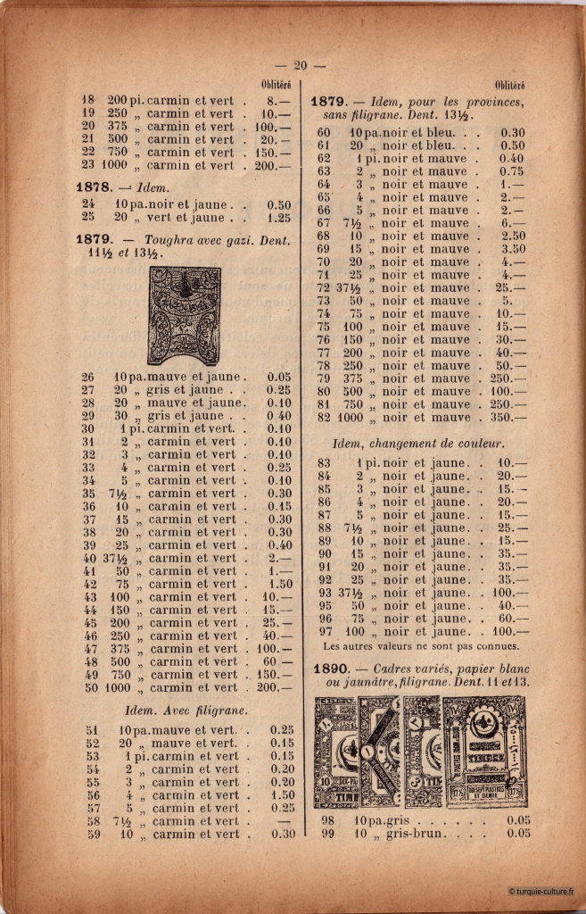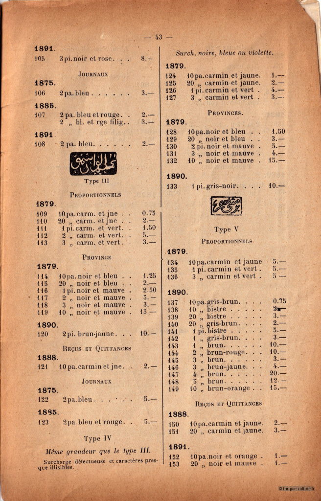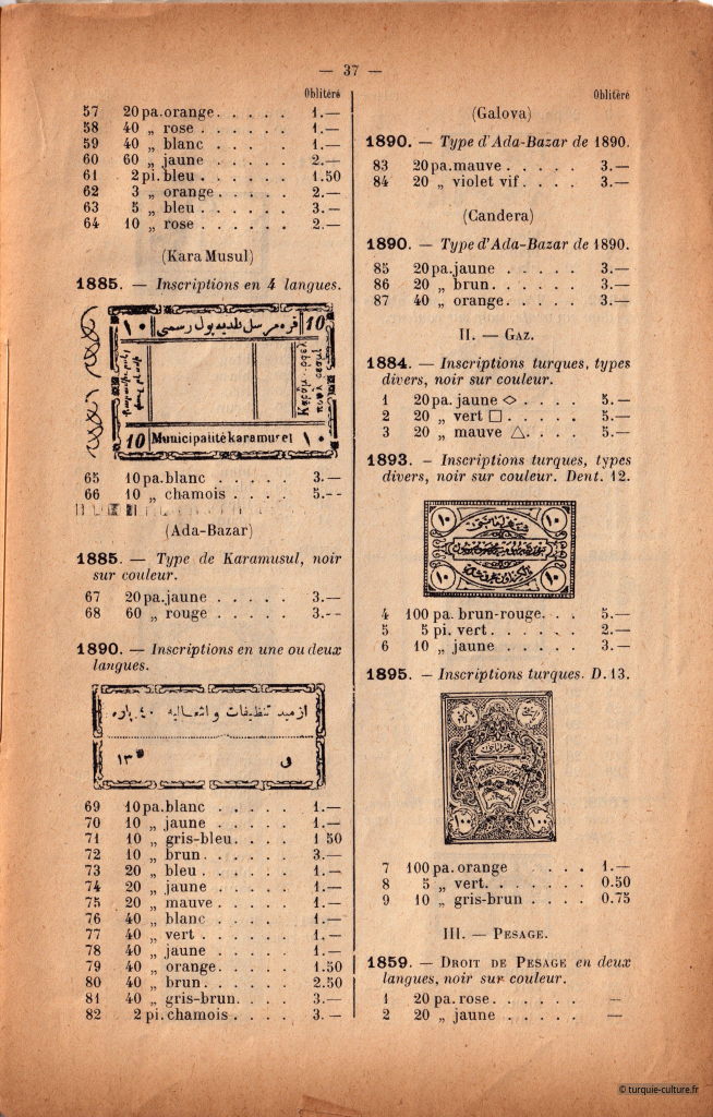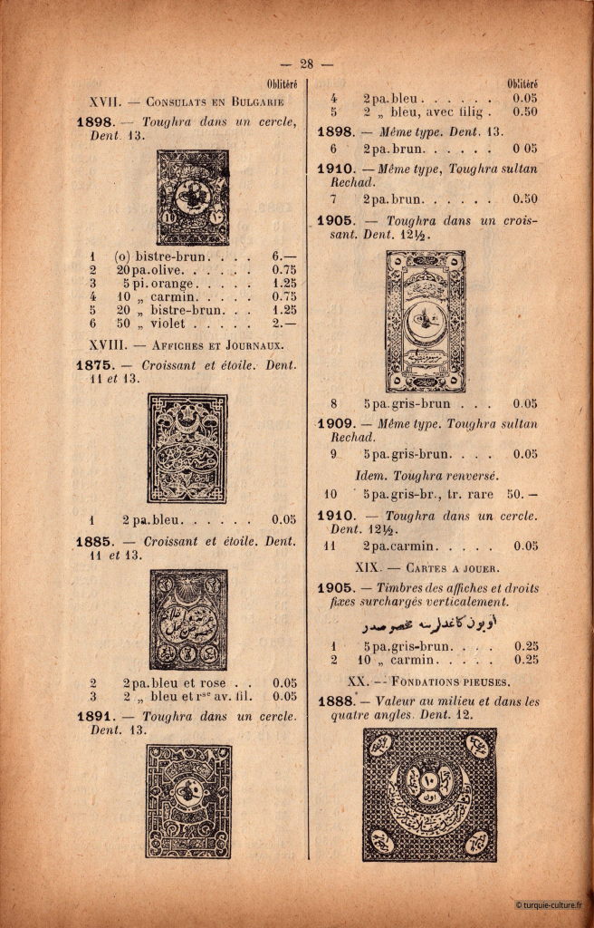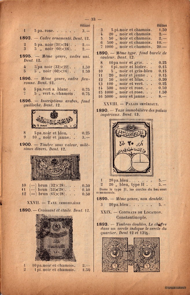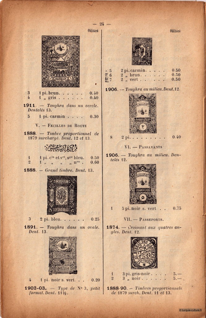 Nous reproduisons les 18 premières pages ci-dessous. Pour voir les timbres, on peut consulter cette page : https://turquie-culture.fr/pages/arts/arts-graphiques/timbres-ottomans-avant-1914.html