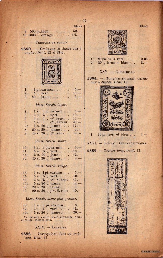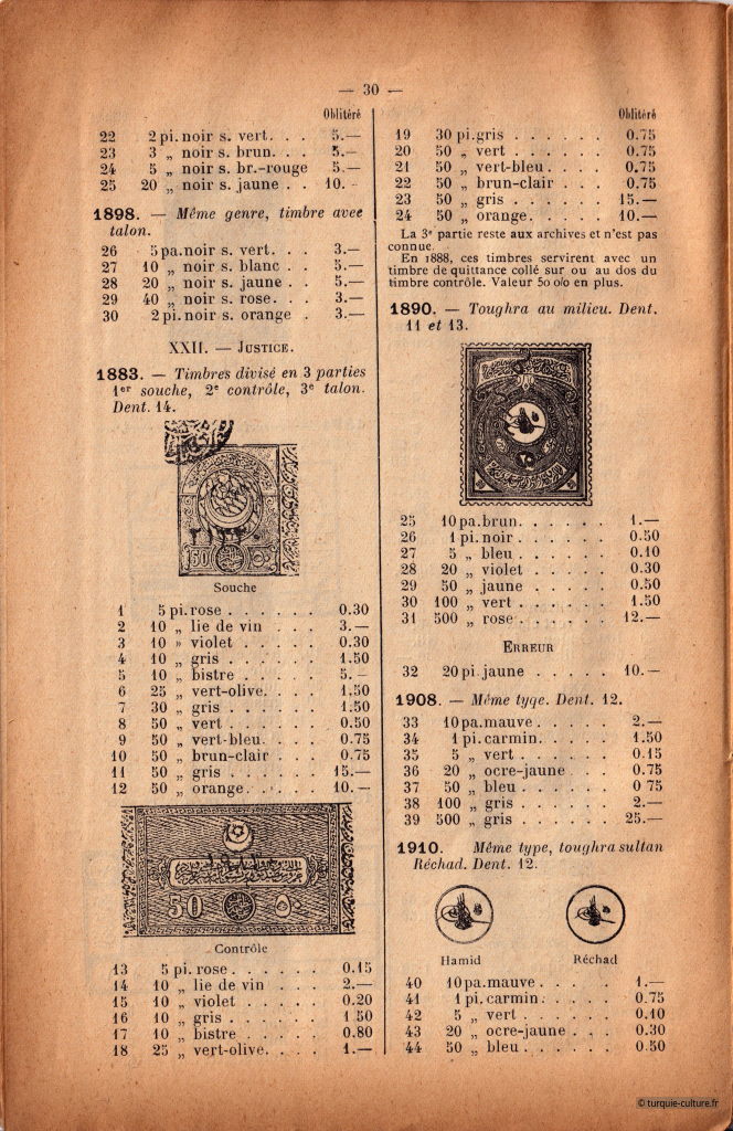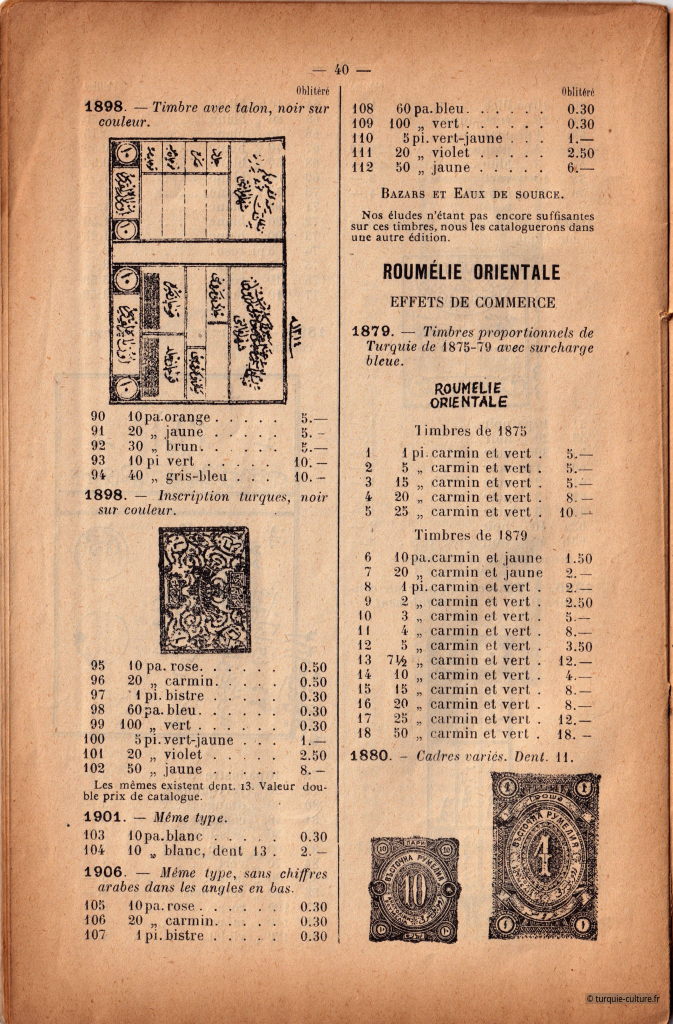 Un des premiers catalogues sur la philatélie turque, publié à Paris en 1912.