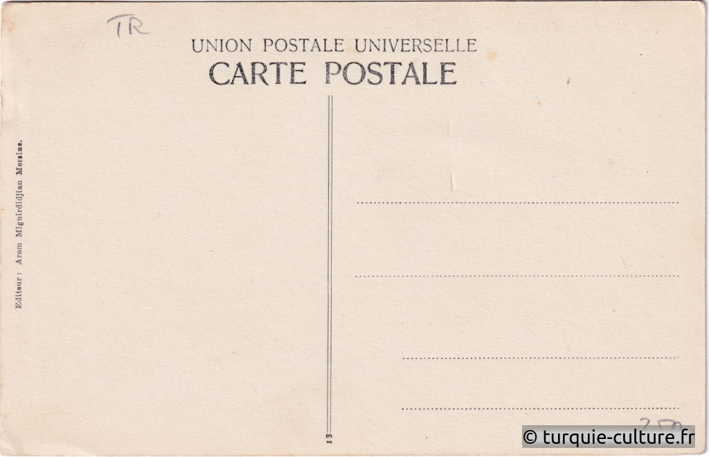 La plupart des cartes postales des années 1920 que nous reproduisons étaient édités par K. Papadopoulos et Fils, qui exerçaient leur activité Mersin et Adana. Les cartes étaient imprimées en phototypie par l'imprimeur Baudinière à Paris.