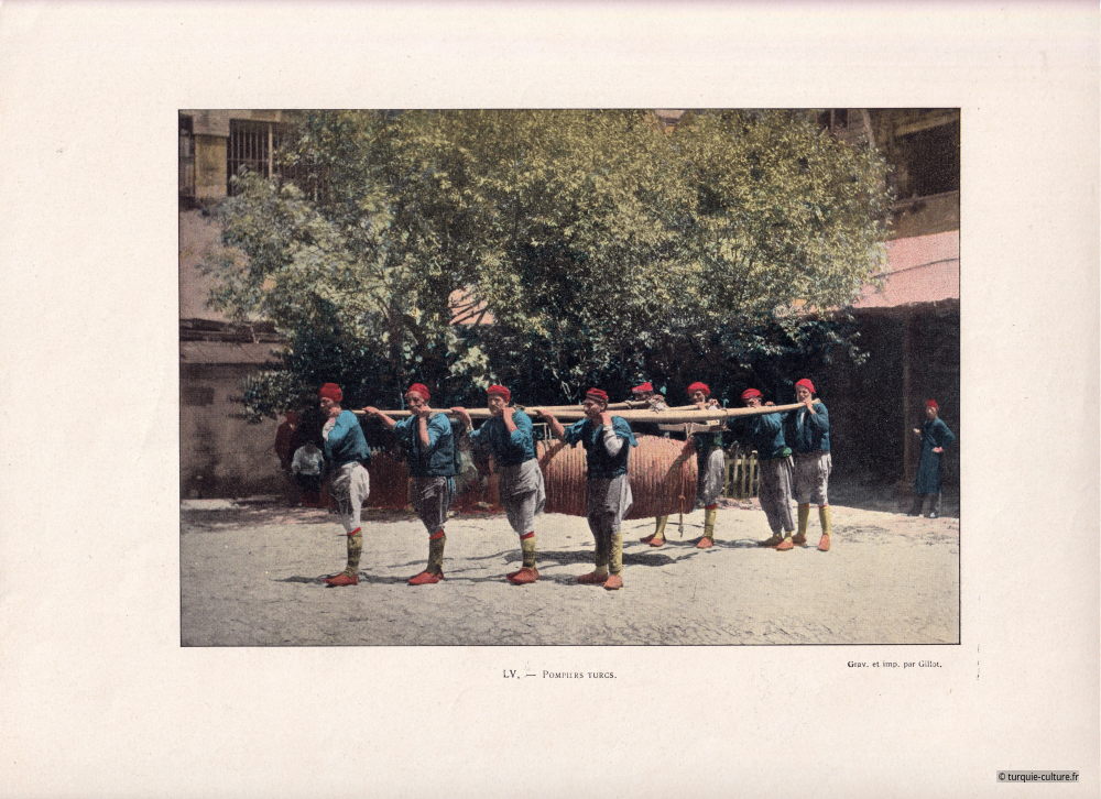 Les incendies étant très fréquents à Constantinople où la plupart des maisons sont en bois, il y a naturellement un certain nombre de pompiers, mais leur organisation est fort rudimentaire, d'autant qu'ils ne relèvent ni du gouvernement ni de la ville.