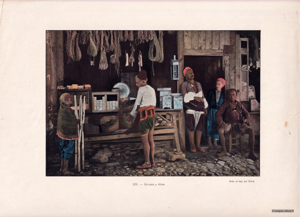 A Constantinople, les épices sont généralement vendues d'une façon ambulante par des Maltais, qui ne sont pas précisément recommandables par leur propreté, mais il y a probablement aussi quelques boutiques comme celle représentée par notre photographie prise à Aidin (l'ancienne Tralles).